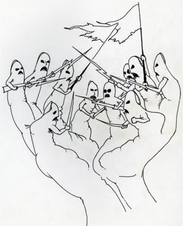 自分は指どうしが戦争しているこの絵が気になりました。